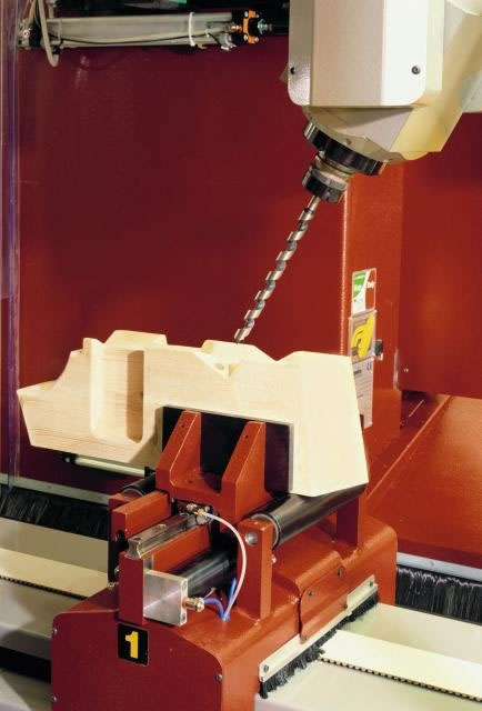 - A Lignastone table (optional, see photos below) of 5000 x 1200 mm (approx. 16 ft x 4 ft), provided with a vacuum held material bed, enables you to process flat elements such as: