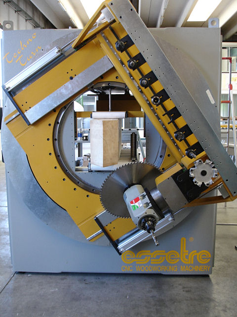 Also for timber processing, as one large circular saw is always available and eight tools exchangeable to work on on all sides of the timber, without need to turn.